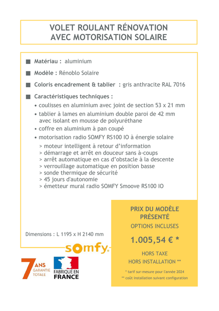 Le volet roulant rénovation motorisé apporte sécurité, confort et modernité à votre maison, offrant une isolation thermique et acoustique supplémentaire. Profitez de la commodité d’une commande à distance tout en valorisant l’esthétique de votre façade.